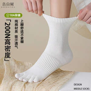 五指袜子女秋冬10A抗菌防臭吸汗透气亚麻中筒袜子束腰无骨分趾袜