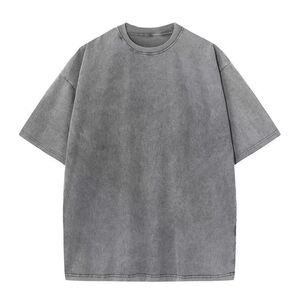 美潮复古水洗做旧T恤男oversized宽松落肩男装T恤健身房大号速干T