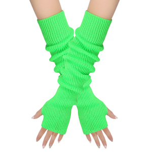 跨境秋冬毛线袖套男女中长款针织保暖半指露指手臂套百搭堆堆袖套