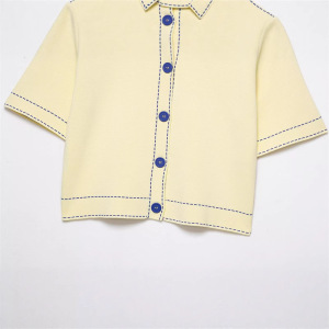 跨境外贸2025新款欧美风圆领宽松套头女设计感小众针织衫2142109