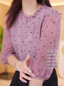 木耳边七分袖爱心时尚轻奢上衣2025夏季新款H减龄显瘦百搭衬衫女