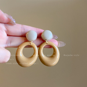 焦糖色复古港风圈圈耳环女气质高级感早秋耳饰小众夸张显脸小耳坠