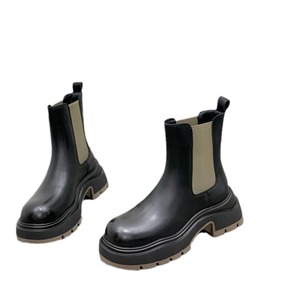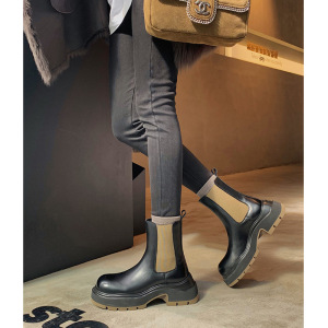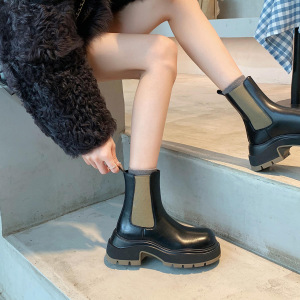 葡葡家studio 新款时髦圆头粗跟切尔西短靴厚底百搭烟筒马丁靴女