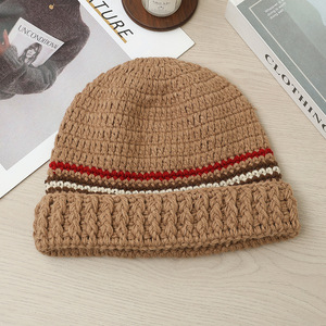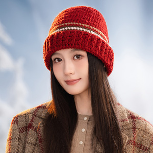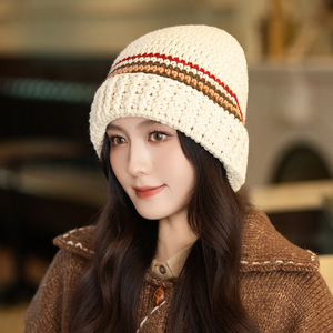 英伦复古针织毛线帽女秋冬百搭大头围防风保暖帽户外休闲包头帽新