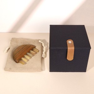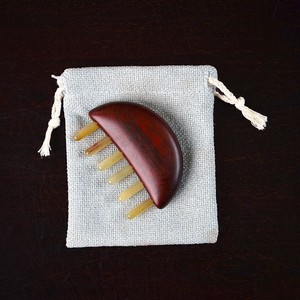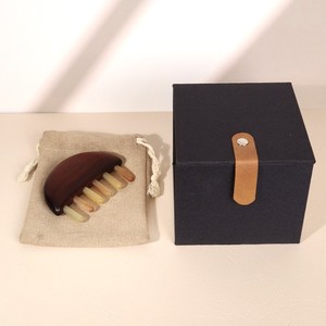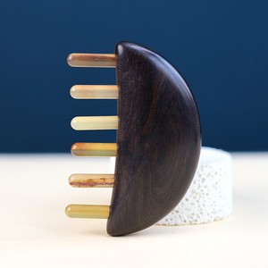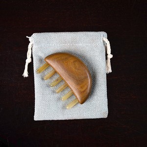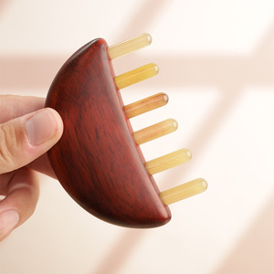 绿檀拼羊角插齿梳粗齿梳檀香梳卷发AMS-T6插齿按摩梳厚实经络按摩