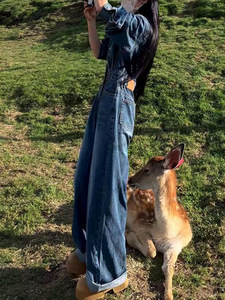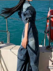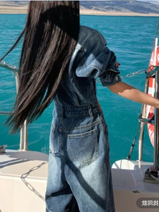 美式时髦水洗复古连衣裤2025秋季新款长袖牛仔连体长裤