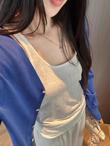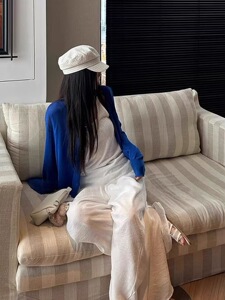 高版本~薄防晒针织开衫女早秋宽松慵懒风正肩长袖上衣外套三件套