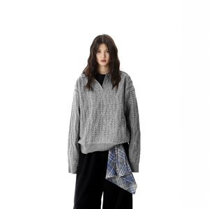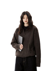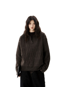 美式复古老钱风套头毛衣男女2025秋冬镂空设计感翻领针织衫外套