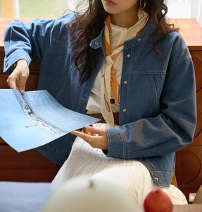 solighter法式复古小立领牛仔外套女秋季夹克外套