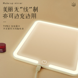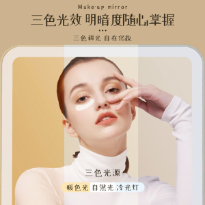 LED化妆镜三色灯妆化妆镜台式桌面方形家用公主镜折叠桌面补妆美