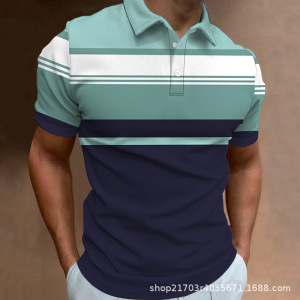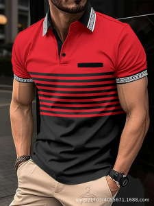 2025夏季跨境外贸3D数码彩色艺术系列商务男士休闲polo衫一件代发