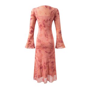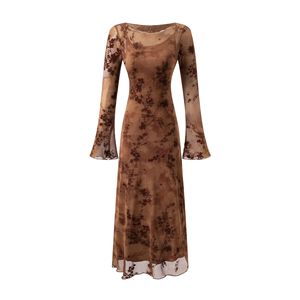 L2608825夏季新款法式复古网纱提花气质休闲一字领喇叭袖连衣裙