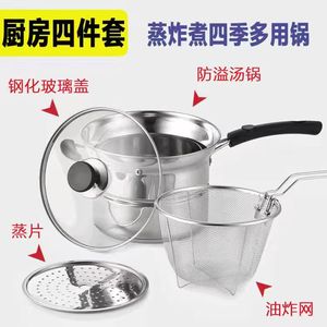 亚马逊跨境不锈钢油炸锅家用多功能汤锅蒸炸煮捞面条锅礼品批发