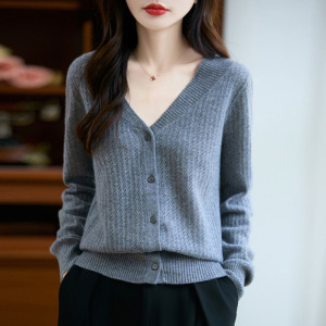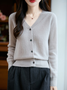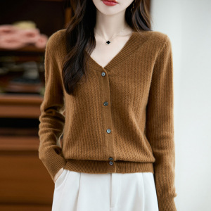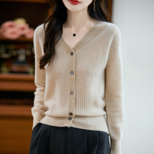 个性V领秋冬羊毛开衫女2025设计感针织气质百搭纯羊毛外套