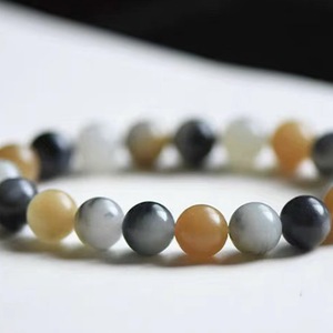 和田玉青花楼兰三色卡8mm手串多宝玉石圆珠单圈珠圆玉润简约百搭