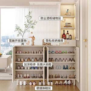 玄关隔断柜入户玄关柜风客厅鞋柜屏风一体酒柜玻璃现代奶油长虹高