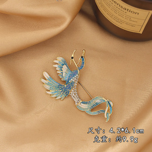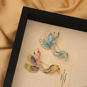 中国风凤凰胸针复古珐琅西装大衣胸花高级感奢华旗袍汉服装饰别针