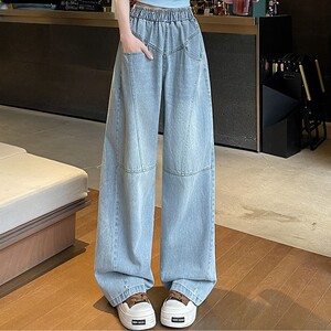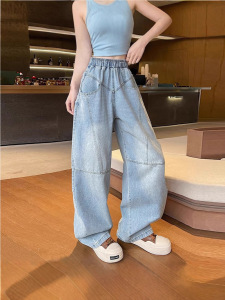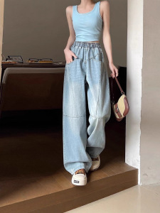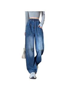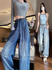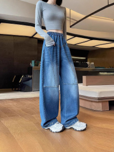 弯刀牛仔裤女2025年春秋季新款高腰宽松大码高个子加长拖地阔腿裤