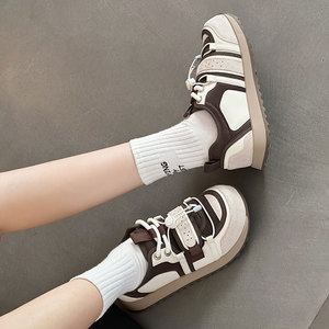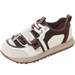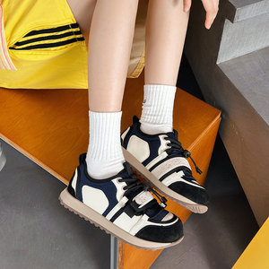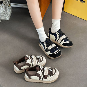 真皮网面透气丑萌大头娃娃鞋女2025秋款轻便软底面包运动鞋休闲鞋