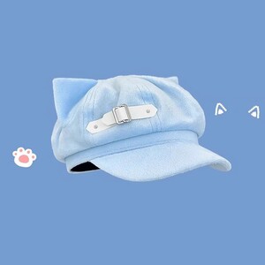 日系y2k猫耳朵贝雷帽女小众二次元亚文化甜美八角帽大头围显脸小