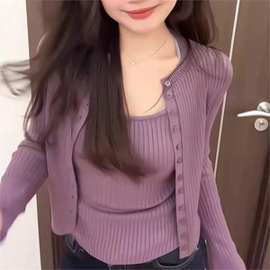大码女装春夏新款韩系纯欲辣妹吊带背心+防晒针织开衫显瘦两件套