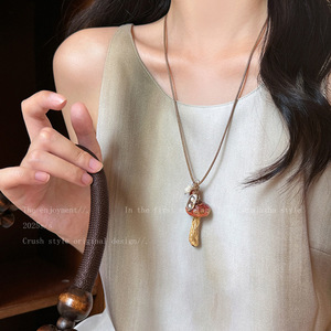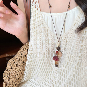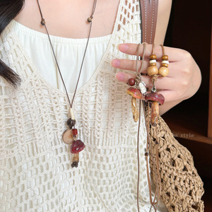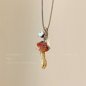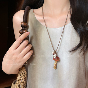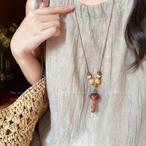 采蘑菇~手工编织绳木质项链女2025新款爆款高级感锁骨链小众配饰
