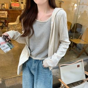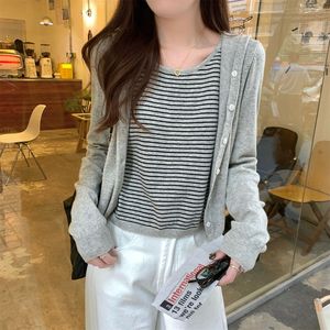 百搭针织衫拼接感2025年连帽春季设计上衣休闲通勤假两件长袖条纹
