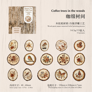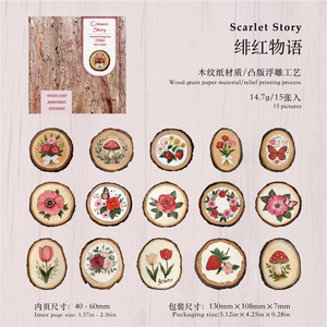 陌墨 凸版浮雕贴纸包 木片印画系列 复古花卉植物手帐diy造景装饰