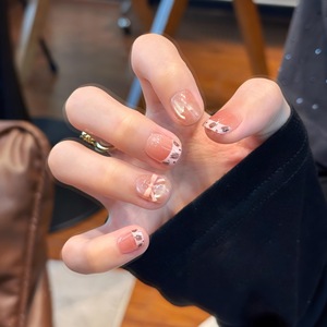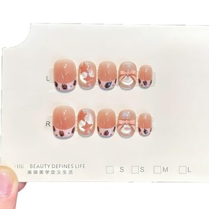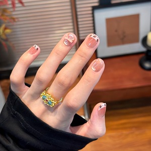 ins风纯手工穿戴甲批发蝴蝶结法式豹纹猫眼假指甲贴片纯手作美甲