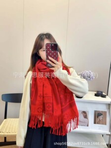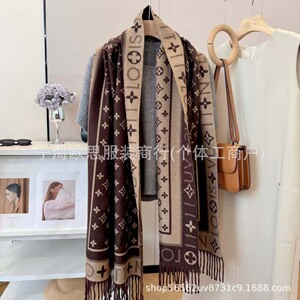 对字母仿羊绒冬新款时尚字母围巾女围脖欧美风中长款保暖空调披肩