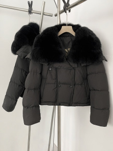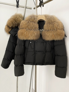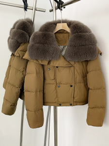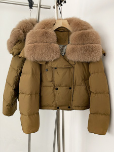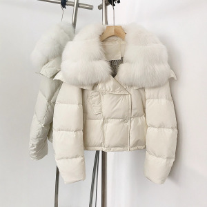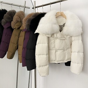 25冬季新款银狐狸大毛领白鸭绒小个子保暖韩版气质通勤短款外套女