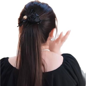 韩版玫瑰花朵珠子发夹百搭扎马尾温婉风头饰气质高级感弹簧夹顶夹