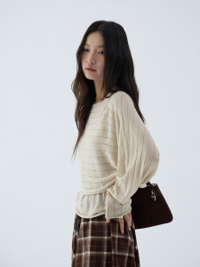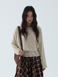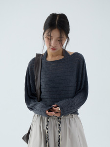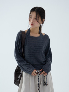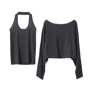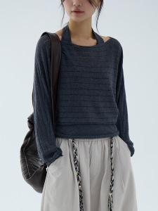 【欧凡】早秋绝美巨好看 长袖一字领罩衫+围脖吊带叠穿两件套3142