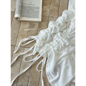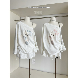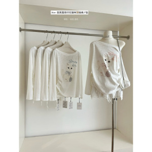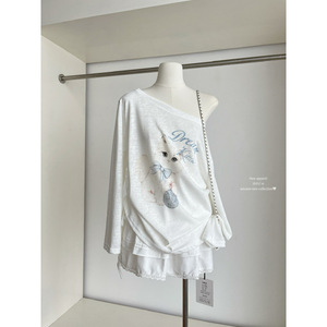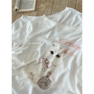 塞纳2025秋季新款韩系少女猫咪印花长袖防晒T恤女宽松抽绳绑带