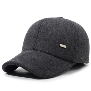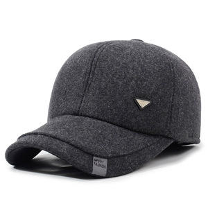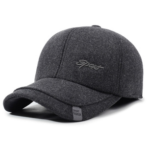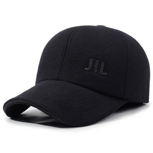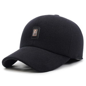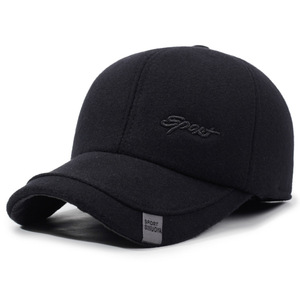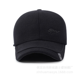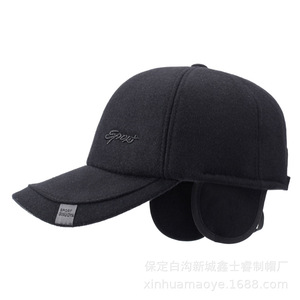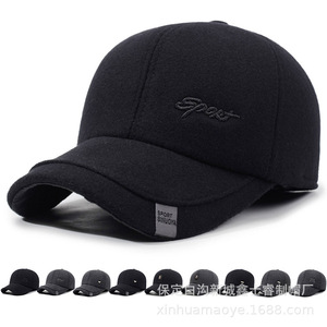 2025冬季中年男士刺绣鸭舌帽时尚休闲户外护耳爸爸棉帽接檐棒球帽