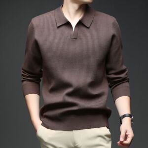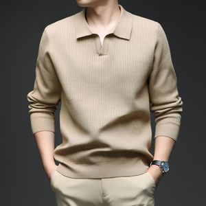跨境外贸高级感男士毛衣翻领长袖秋季休闲百搭爸爸针织衫男批发