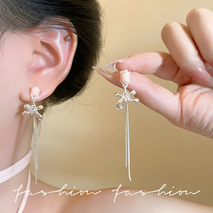 温柔蝴蝶结郁金香流苏长款耳钉女2025新款小众设计感气质耳坠耳饰