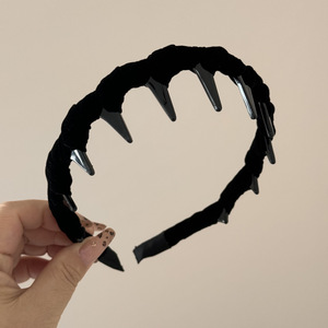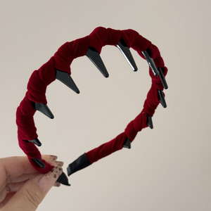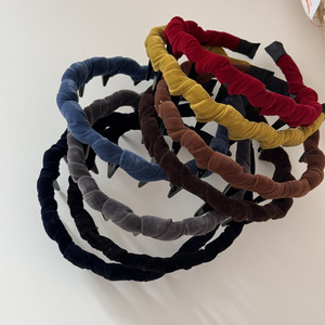 港风复古红丝绒波浪带齿发箍洗脸压发头箍高级感发饰女发卡不勒头