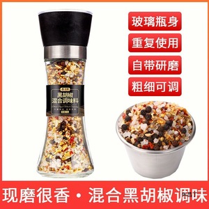 黑胡椒海盐研磨瓶装混合调味料柠檬颗粒鸡胸肉牛排西餐胡椒粒粉料