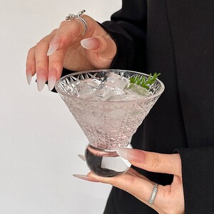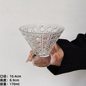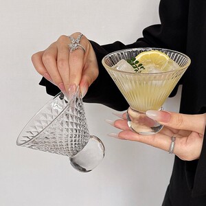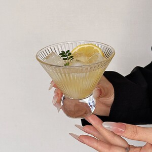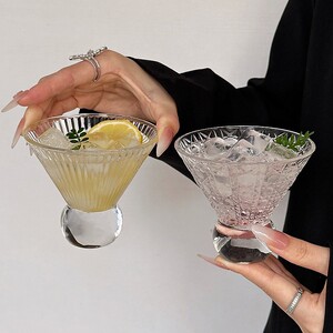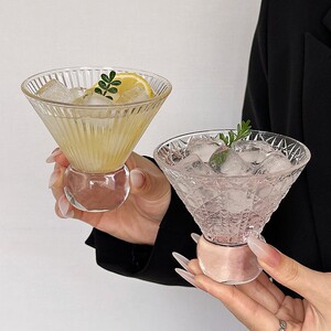 高颜值条纹设计冰美式咖啡杯玻璃杯法式中古香槟杯高级冰淇淋杯子