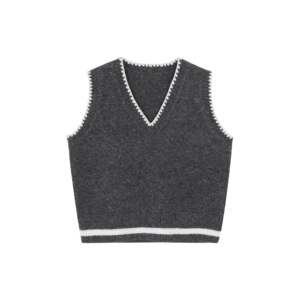红人馆马甲背心女款时髦洋气秋季无袖超好看灰色外搭针织马夹