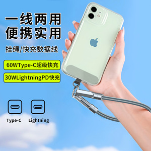 手机挂绳PD快充数据线 手机充电线手腕防丢男女通用背夹片手绳线