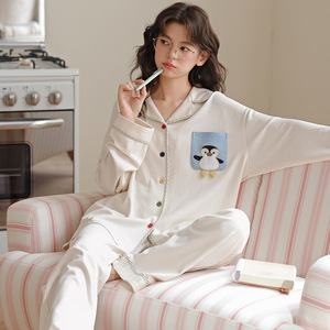 2025新款纯棉睡衣女春秋季长袖宽松条纹套装女士家居服可外穿卡通