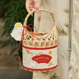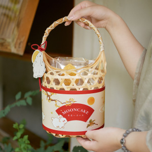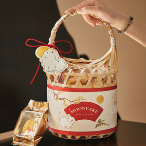 2025新款创意中秋冰皮月饼礼盒包装盒手提竹编竹篮礼品盒子空