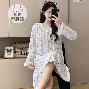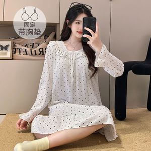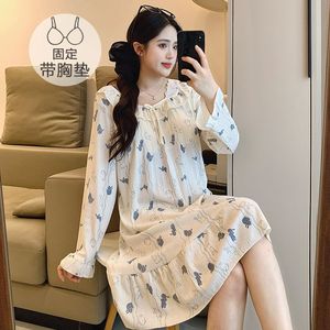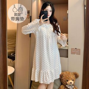 带胸垫睡衣女春秋季新款韩版甜美ins风棉质长袖睡裙家居服可爱穿