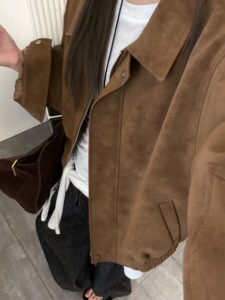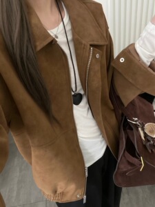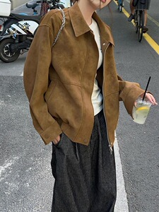 美式复古仿麂皮绒夹克外套女春秋季新款休闲宽松翻领中长款上衣潮