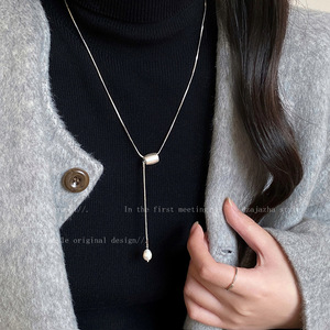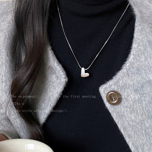 银色拉丝爱心项链女款韩系极简冷淡风毛衣链秋冬高级感长款卫衣链