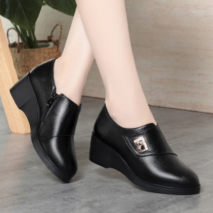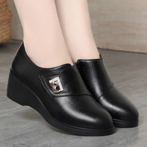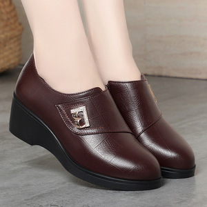 一件代发平底春秋软底单鞋女中老年女鞋坡跟鞋子女款深口女士皮鞋