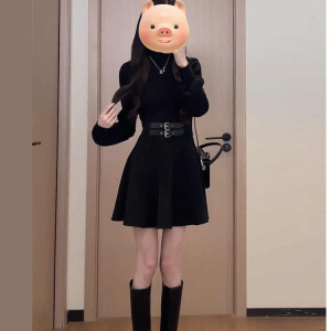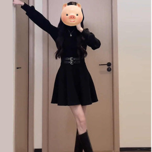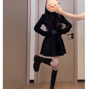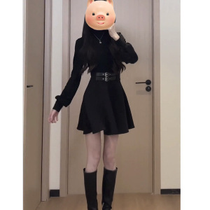 早秋法式黑色内搭连衣裙子女秋冬装2025新款小个子掐腰气质小黑裙