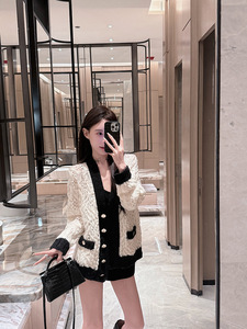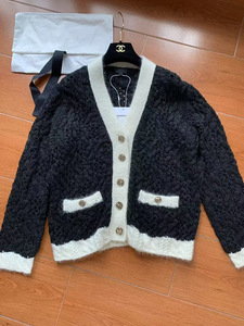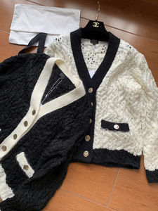 原版开发!深圳南油25小香秋冬新款羊绒镂空针织保暖透气撞色开衫